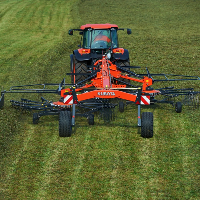 Les andaineur Kubota RA2577 à andainage latéral sont conçus pour être polyvalents tout en ayant un excellent débit de chantier.