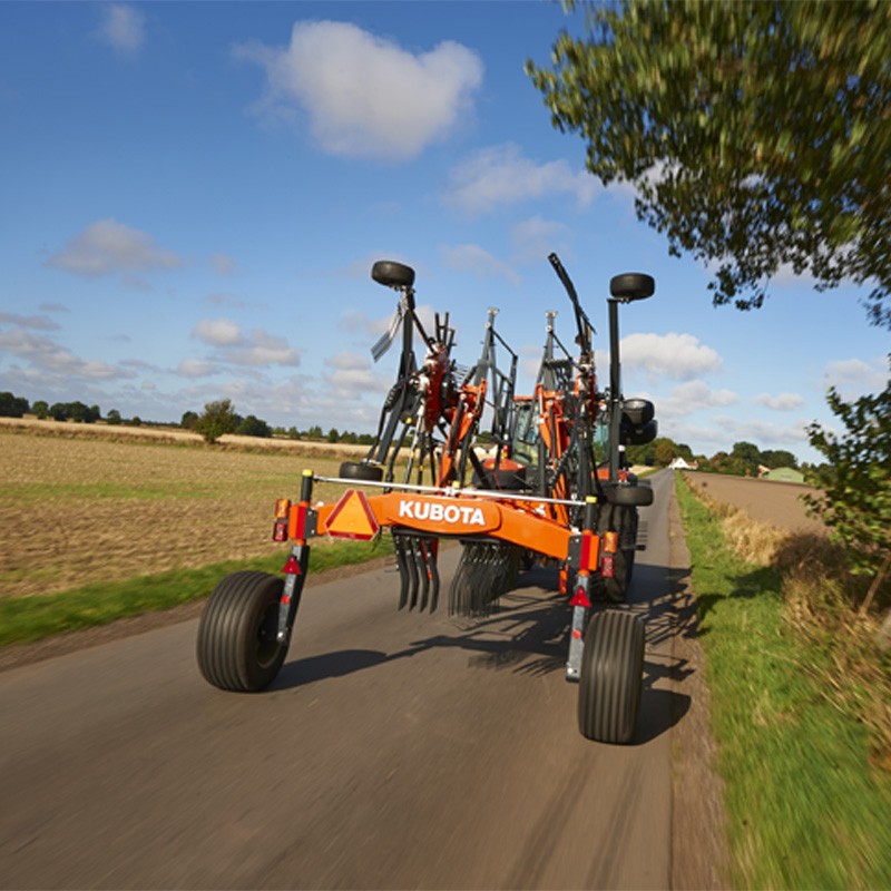 Ces andaineurs ont été conçus pour les conditions de travail les plus difficiles et sont dotés d'un boîtier d'entraînement à bain d'huile haute performance et d'un châssis porteur robuste. La largeur de travail et d'andainage réglable hydrauliquement et la possibilité d'effectuer des virages serrés jusqu'à 80° sont des caractéristiques importantes de ces andaineurs.