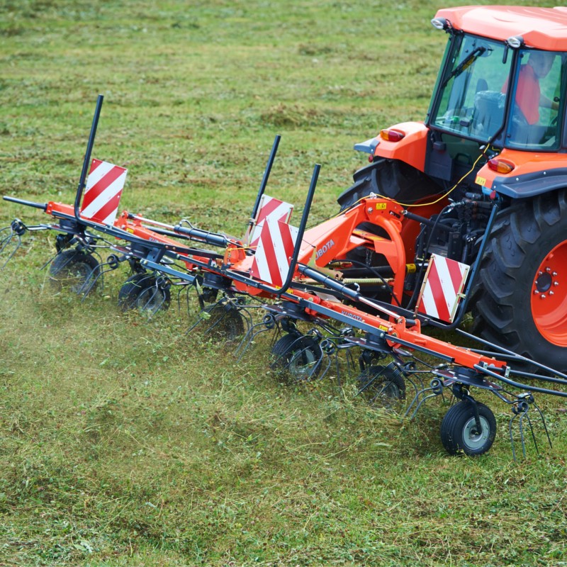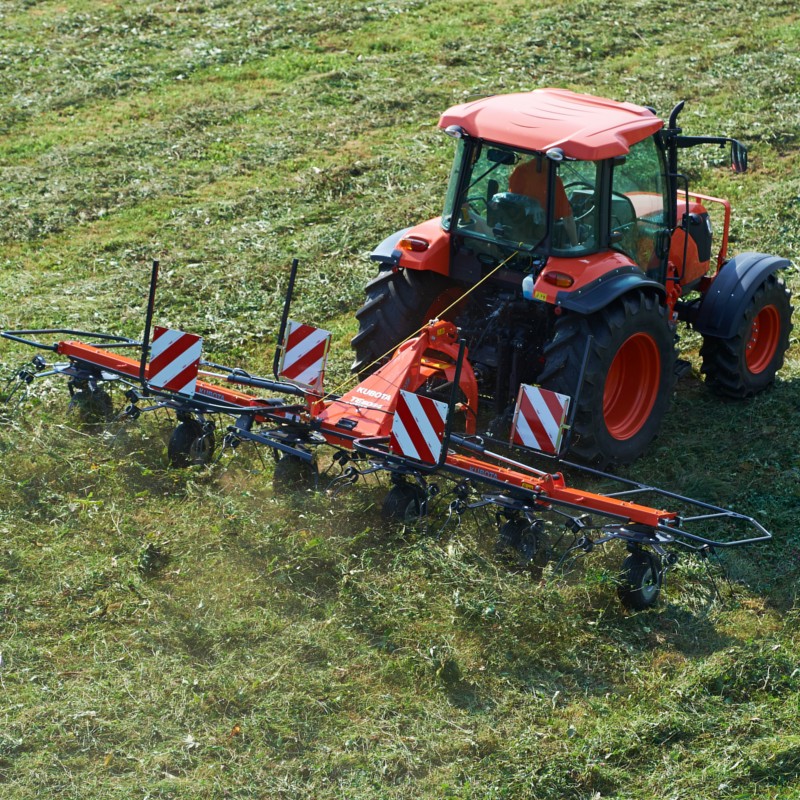 Les faneuses de la gamme standard Kubota sont des machines légères et robustes pouvant être entraînées par des tracteurs de faible puissance. Leurs rotors de petits diamètres sont conçus pour avoir une qualité de fanage inégalée.