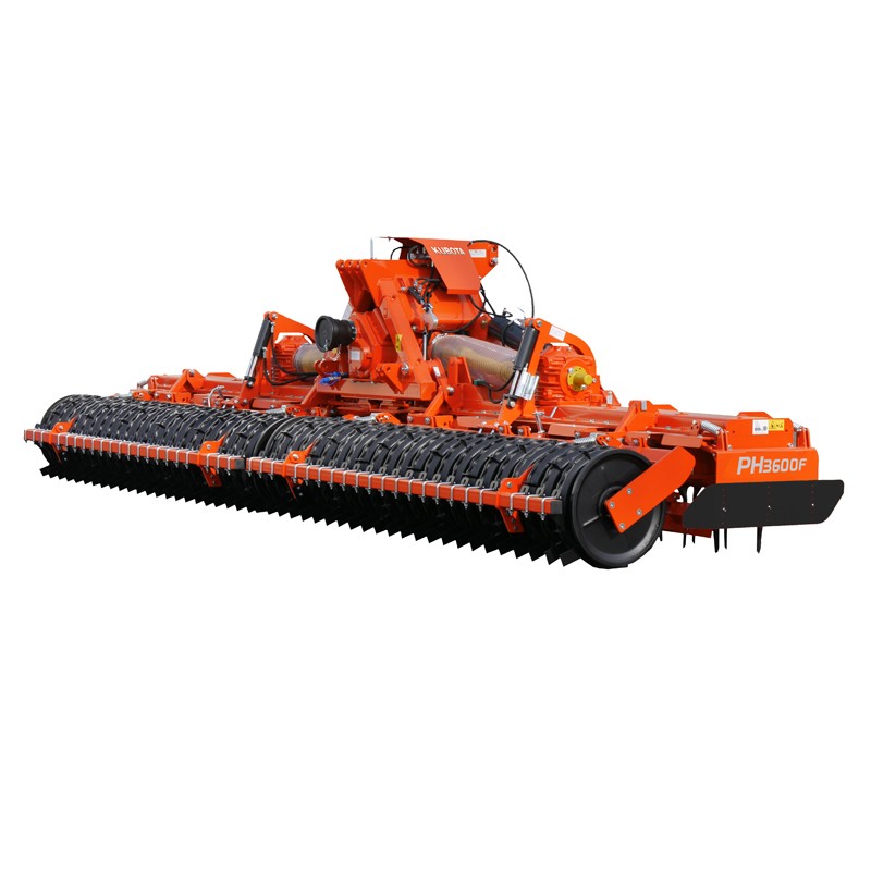 La herse rotative repliable PH3000F avec des largeurs de travail de 4.5 à 6m vient compléter l'offre des herses KUBOTA.