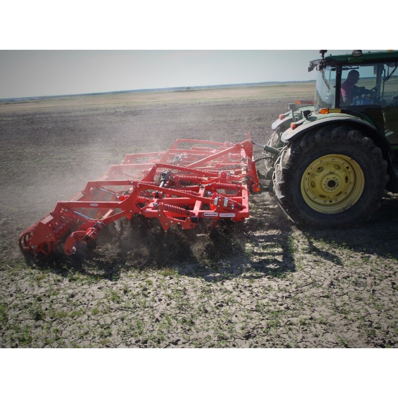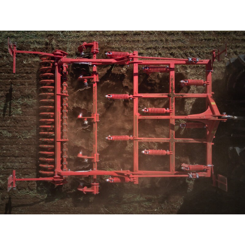 La conception des déchaumeurs TERREMOTO avec 2 ou 3 rangées selon les modèles assurent un écoulement optimal, avec un rouleau arrière qui égalise et reconsolide le sol pour les semis à venir.