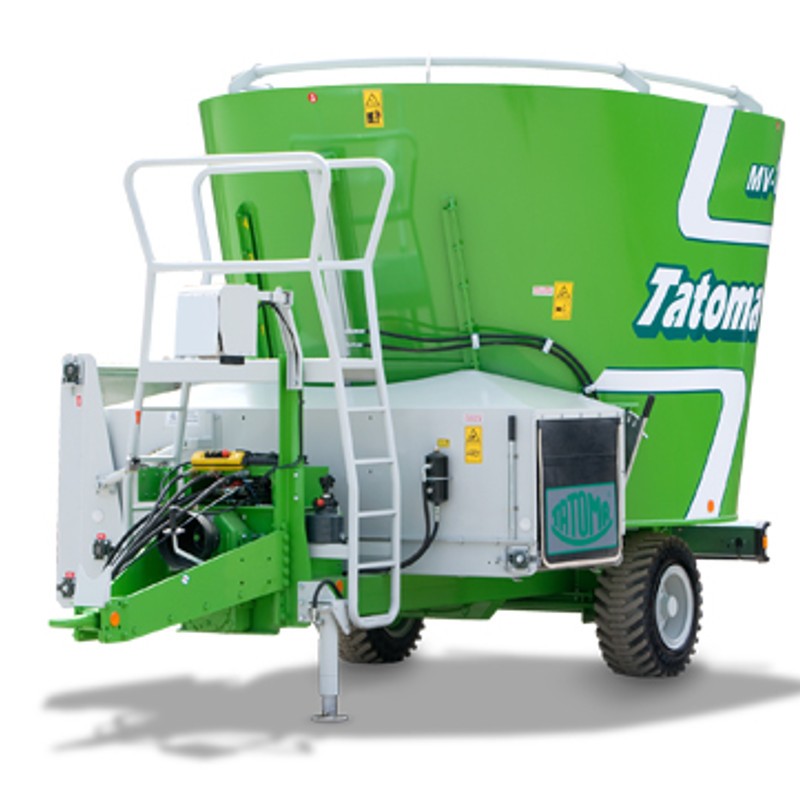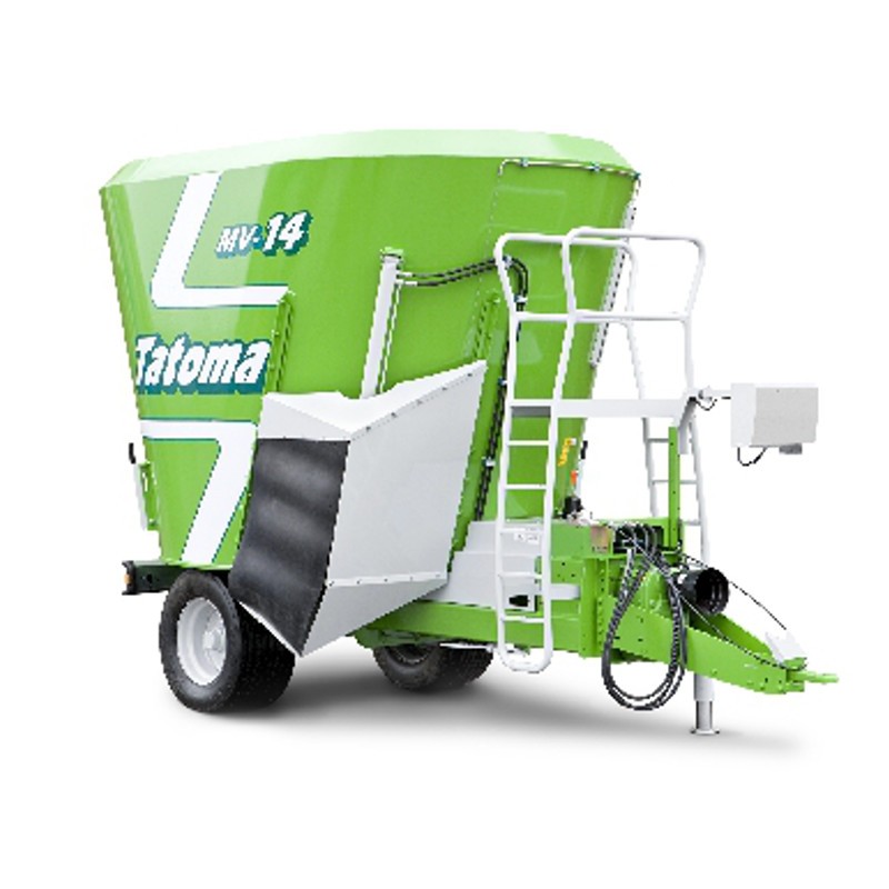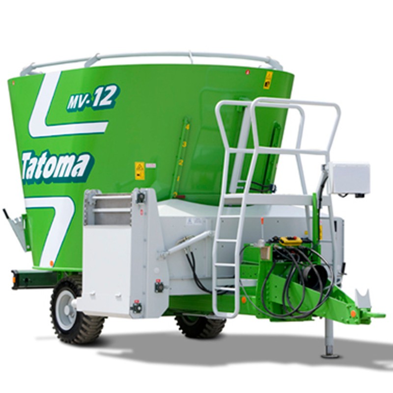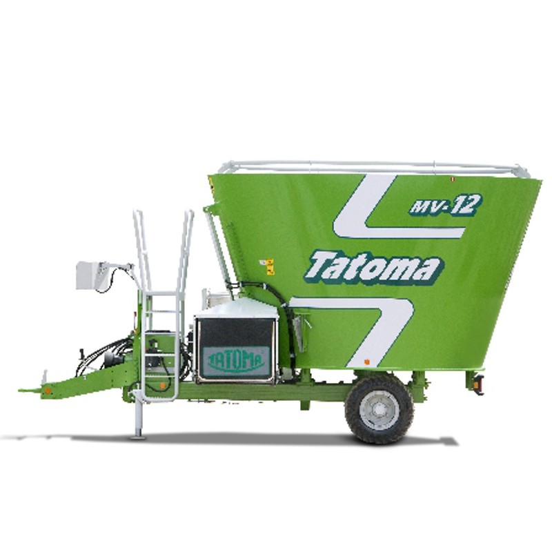 Les mélangeuses verticales Tatoma série MV sont des mélangeuses dotées d'une vis conique verticale. Tout a été prévu pour avoir un mélange efficace et rapide. Leur capacité va de 8 à 18 m³. Leur déchargement se fait par tapis latéral, à l'avant ou à l'arrière.