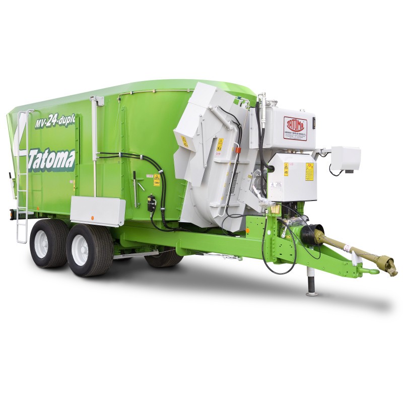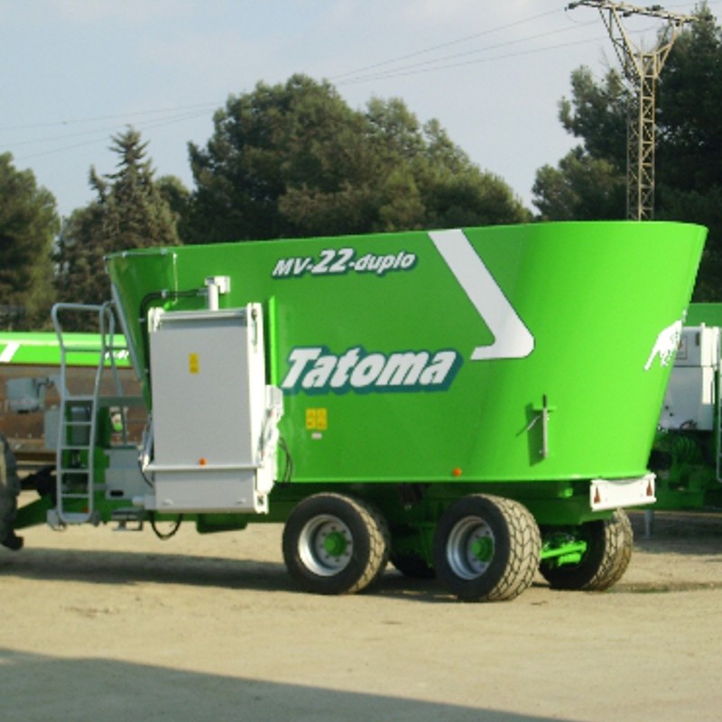 Les mélangeuses verticales Tatoma MV Duplo sont équipées d'une cuve tronconique et de deux vis sans fin coniques qui permettent de couper et mélanger tous types de produits. Le choix des deux vis verticales s'est fait pour une plus grande performance tout en réduisant la hauteur de la cuve. La série MV Duplo comprend 5 modèles de 14 à 26 m³ de contenance.