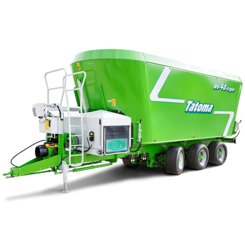 Les mélangeuses verticales Tatoma série MV Triplo contiennent 30 à 45 m³. Elles sont équipées d'un système de mélange par trois vis sans fin, elles sont adaptées aux grandes exploitations et autorisent un débit de chantier exceptionnel.