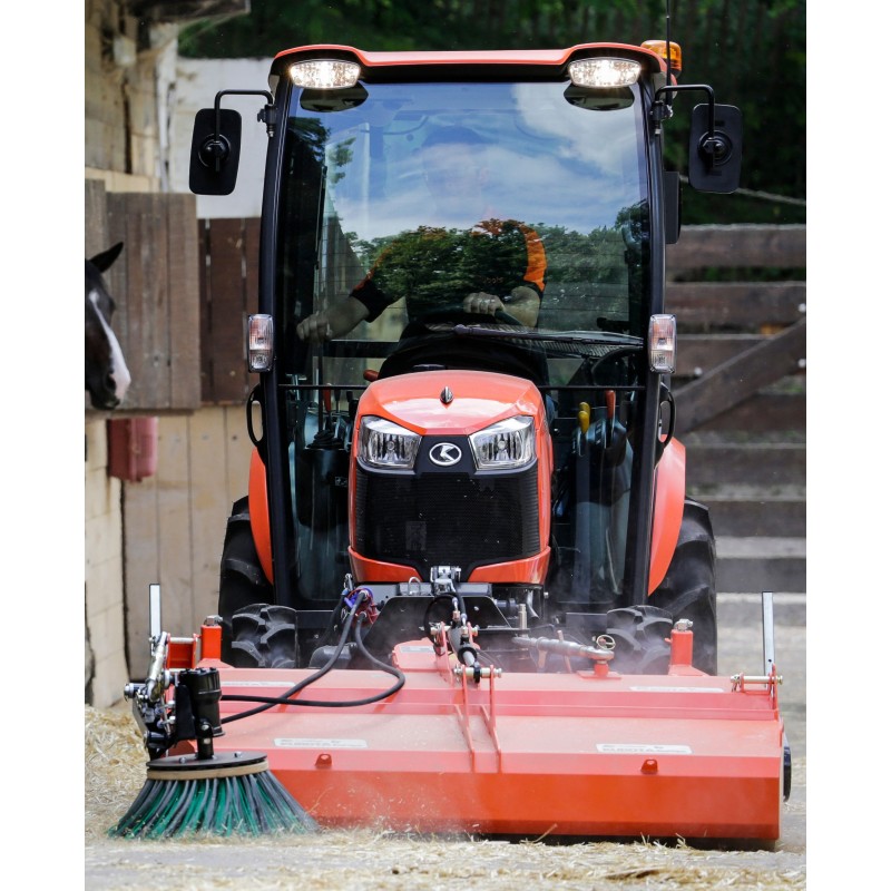 Kubota propose une large gamme de balayeuse de 130 à 240cm avec ou sans bac de ramassage.