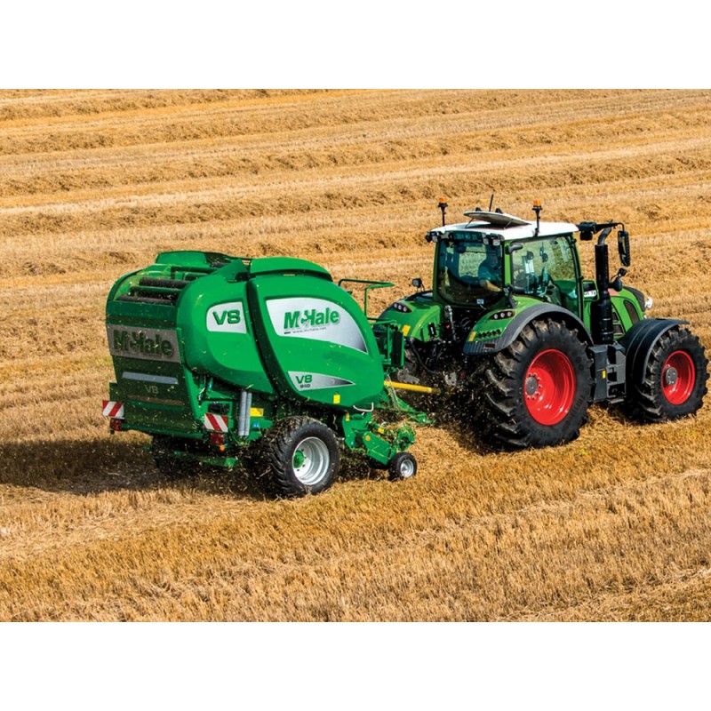 La presse de la série V8 sont des presses à chambre variable de grand diamètre sans système de coupe, conçues pour réaliser des balles de 0,6 à 1,9m. Elle sont équipées d’un ameneur rotatif de haute capacité et assure un flux de fourrage uniforme vers la chambre de pressage.