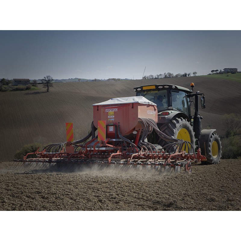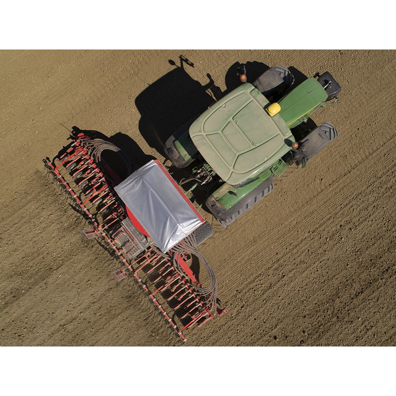 Le Pinta SC dispose d'une trémie divisée en 2 compartiments, avec 2 doseurs centralisées pour la distribution des semences et de l'engrais. La gestion totalement électrique avec un système de communication ISOBUS, permet de gérer et de contrôler tous les paramètres de semis directement depuis la cabine du tracteur.