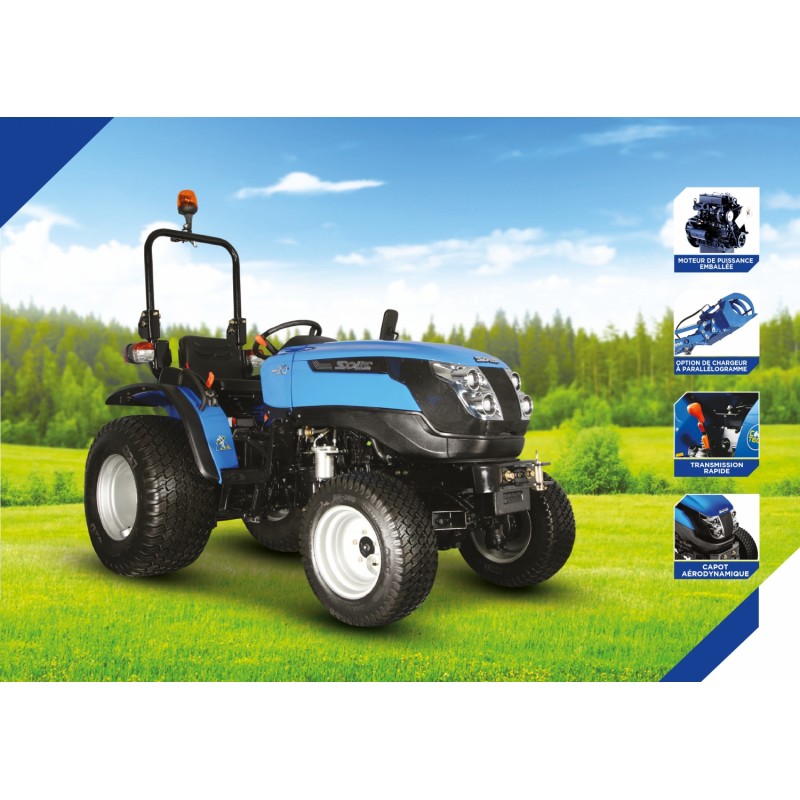 Le Solis 20 est équipé d'un relevage 3 points et d'une prise de force à 3 régimes, vous pouvez ainsi entraîner tous les accessoires disponibles sur le marché.